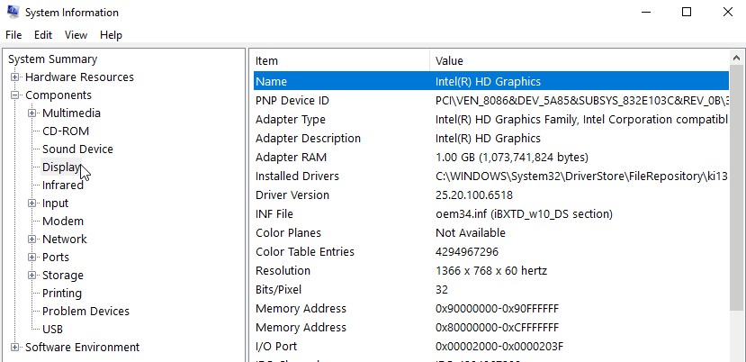 Before you find the driver you need, you’ll need the full name of your graphic card. Enter the System Information window by typing System Information into the Windows search bar. Once it opens, select “Components”, and then select “Display”. You’ll find the graphic card’s name there, which you can use to find the corresponding video drivers.