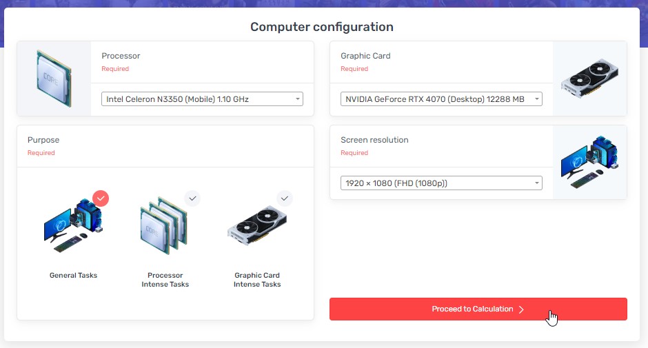 Once you enter the information, press “Proceed to Calculation”. The software will then calculate whether or not your PC can actually handle the graphic card. If the results are in the red zone, it means that it’s too powerful for your computer.